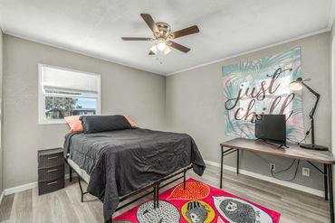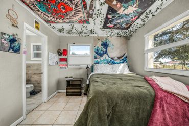 There are 4 bedrooms total in this split floorplan home, meaning that the master bedroom is on the opposite side of the home as the other 3 bedrooms. The other 3 bedrooms share a hallway and a full sized bathroom. The larger, back bedroom has large windows really allowing a great view of the backyard and freshwater canal where you can often spot various bird species and squirrels playing in the backyard. This bedroom comes with a super comfy queen bed, a large TV, and a private bathroom with a toilet and sink. The second bedroom also has views of the backyard and water from a more modest window, a full sized bed, and a TV. The third bedroom come with a full sized bed and a modest TV. All beds come with comfy bedding, two king pillows, and two standard pillows. Additional pillows are available in the home. We do live here and have pets so all of the pillows, bed linens and towels you will use are designated for rentals and are stored offsite.